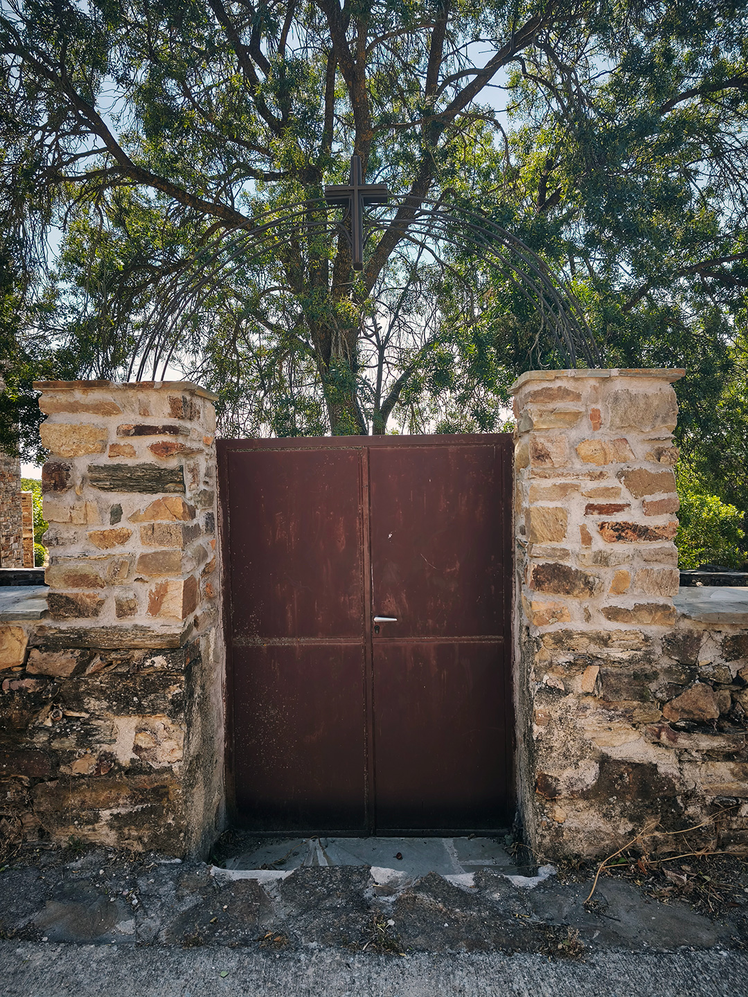 El cementerio viejo de Berzosa del Lozoya se encuentra completamente integrado en la población, de tal manera que si no te fijas en que hay cruces en su interior pasa desapercibido como un pequeño solar o corral.