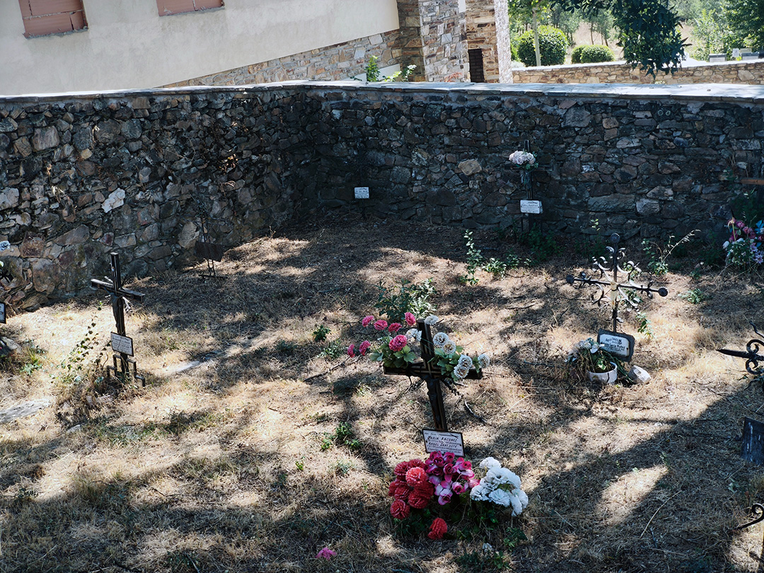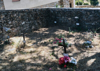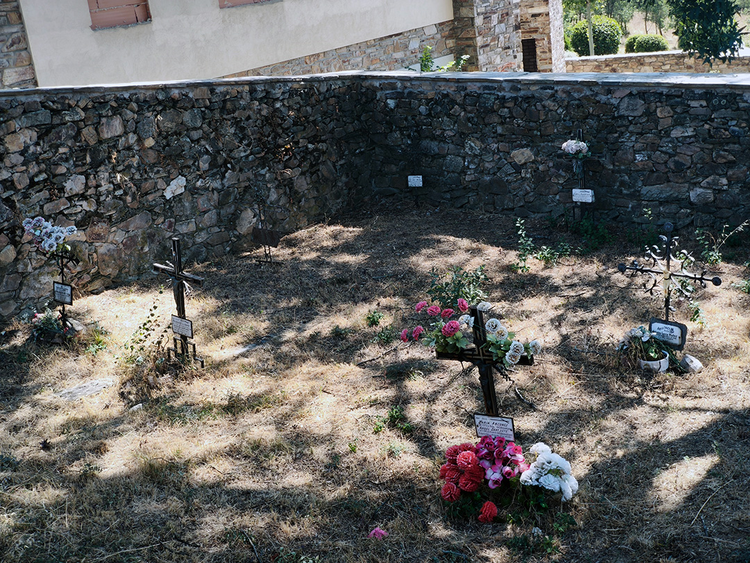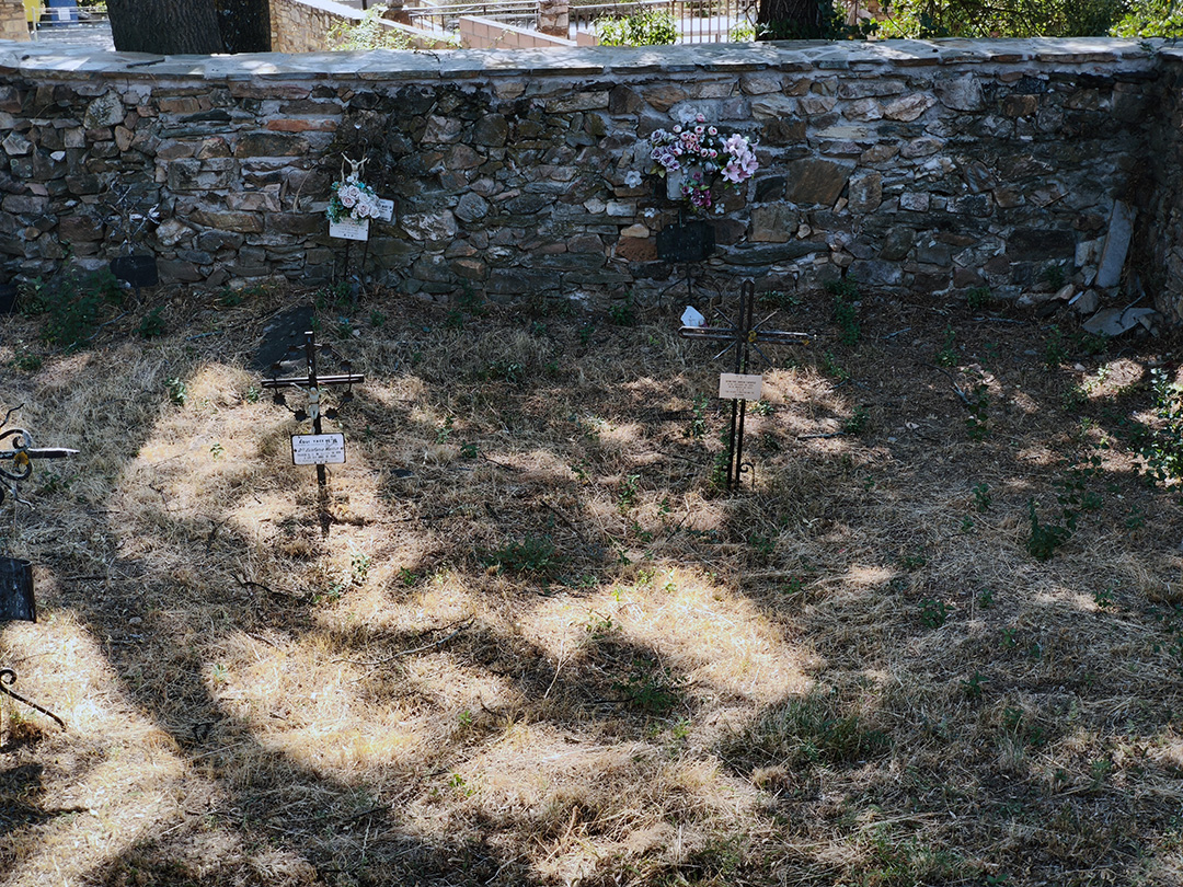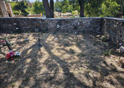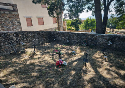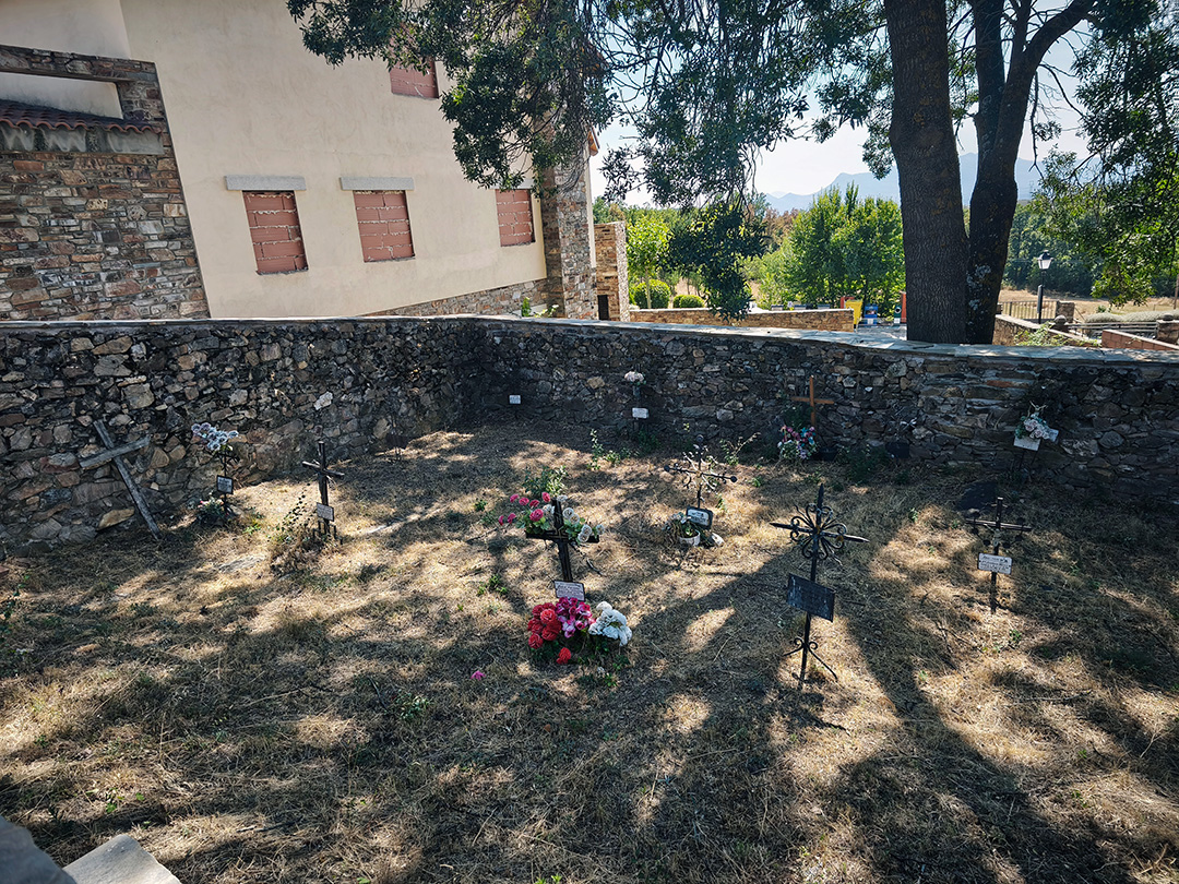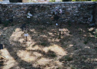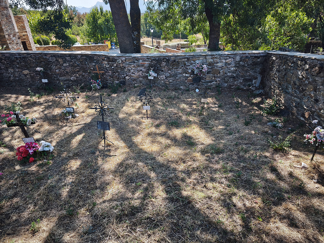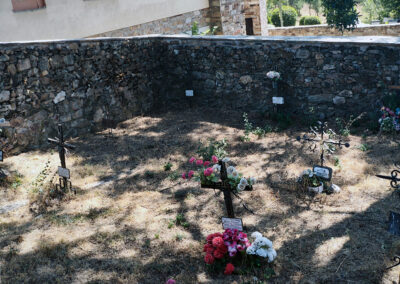 Está delimitado por un muro de piedra a media altura, por lo que desde el exterior se ve el cementerio por completo, clausurado desde los años 80 del siglo pasado.